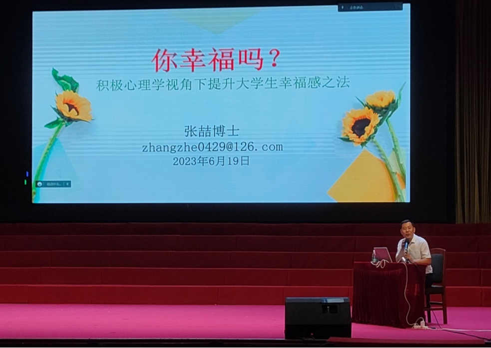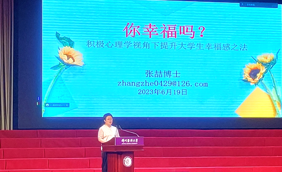 为促进主题教育走深走实,缓解期末复习期间学生的心理压力,6月19日,锦州医科大学心理素质教育平台在大学生会堂开展“心灵讲坛”心理知识讲座活动。本次活动邀请到渤海大学学生工作部副部长张喆为学生带来《积极心理学视角下提升大学生幸福感之法》讲座,学校心理健康指导中心主任高书杰主持,1000余名学生以线下和线上方式参加活动。