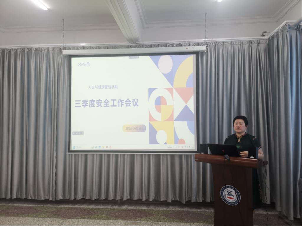 6月9日,人文与健康管理学院召开三季度安全工作会议,会议由学院高书杰院长主持,学院领导班子、全体教职工通过线上线下相结合方式参加会议。