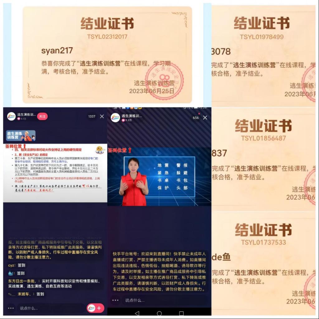 为进一步扩大应急科普人群覆盖面,人文与健康管理学院组织全院师生参与“人人讲安全、个个会应急”网络知识竞赛,以及线上“逃生演练训练营”活动,全院师生积极响应,营造出人人增强安全意识、个个学会查找隐患的浓厚氛围。