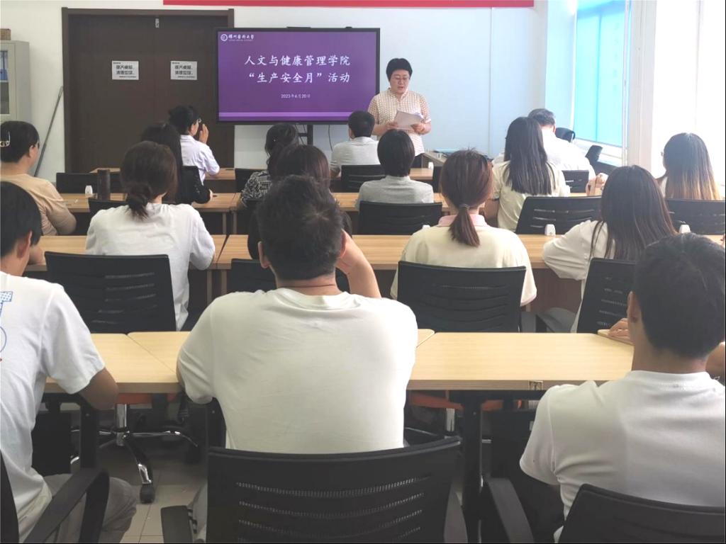 为进一步提升全院师生的安全意识和避险逃生能力,加大安全生产宣教力度,推动落实安全生产主体责任,全面提升广大师生安全意识,人文与健康管理学院于6月20日组织开展学院“安全生产月”集体活动。