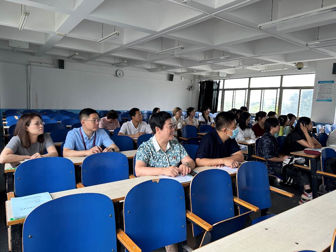 学校党委巡察办公室主任陈军、学院领导听取了戈丽薇教师讲授的《医学伦理学》课程。在听课中,边听边看边记,在了解讲授内容的同时,认真观察学生的学习状态。在第一节课程结束后,在人文楼307会议室召开2023-2024-1学期开学首日听课反馈会议。