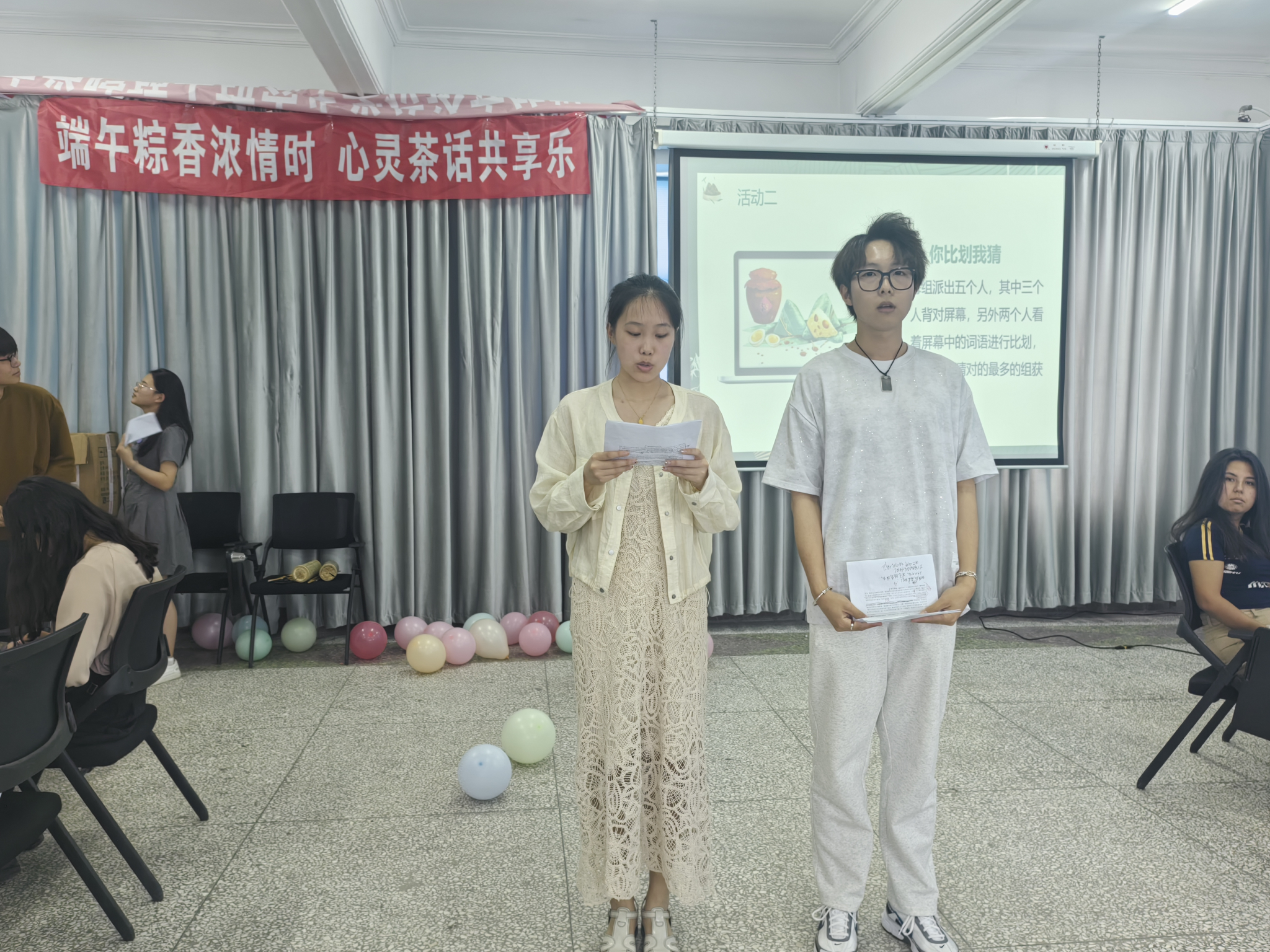 又是一年端午节,为了弘扬中华民族传统文化,增进对传统文化的了解和认同,感受传统文化的魅力,共同度过一个有意义的端午节!心理健康协会于2024年6月2日在西校园人文楼402教室举办了以“浓情端午,纵享欢乐”为主题的茶话会。与此同时,我们邀请了来自健康管理现代产业学院和食品与健康学院的62名同学共同品味茶香,分享故事,感受节日的温暖。