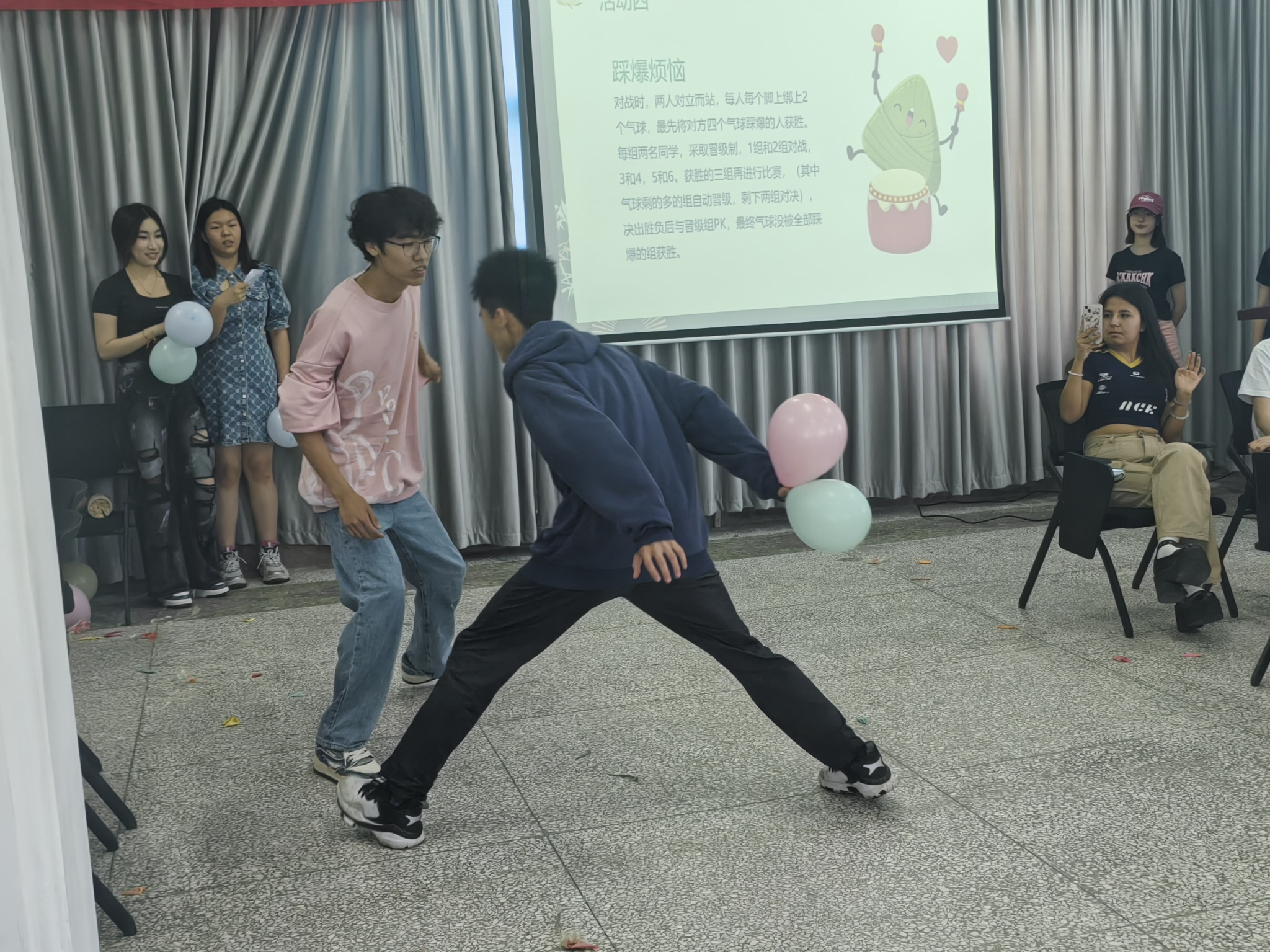 第三个游戏——踩爆烦恼。生活中总会有那么一些小烦恼,像气泡一样萦绕在我们心头。如果你正面临烦恼,就让我们来一场别开生面的"踩爆烦恼"游戏。踩爆气球的瞬间,同学们的脸上都露出了释然的笑容,仿佛真的感受到了烦恼被释放的快感。记住,生活就像这场游戏,只有我们主动出击,才能将那些烦恼——击败!